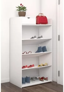 VCM. – My Home Holz Regal Dielenmöbel Schuhregal Schuhschrank Schublade 5 Fächer Fudal XL Weiß