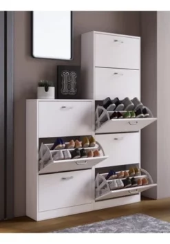 VCM. – My Home Holz Regal Kipper Schuhregal Schuhschrank Schuhkipper 3 Klappen Sipos L Weiß
