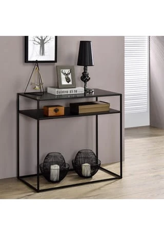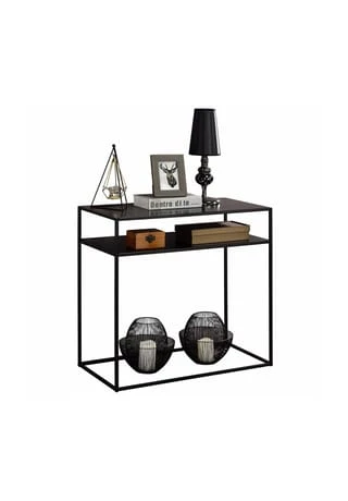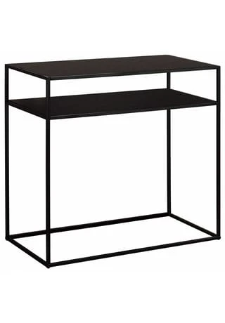 DER KOSOLENTISCH GONZALO passt Dank seiner schmalen Bauweise perfekt in Flur oder Eingangsbereich. Auf unserer rechteckigen Konsole mit den 2 Ablageflächen findet jedes Telefon, die Bilder Ihrer Lieblinge oder Ihre Dekomaterialien genügend Platz und wird zum Blickfang. Dank seinem schlichten und modernen Design, fügt sich unser Ablagetisch harmonisch in jeden Einrichtungsstil ein. Die Tischplatte kann unkompliziert mit einem feuchten Tuch gereinigt werden. Materialbeschreibung: Das Gestell besteht aus Metall und ist in schwarz lackiert Die Tischplatten aus Metall sind in schwarz lackiert Ausstattung/Merkmale des Produkts: Stärke des Metallgestells: 13 mm Stärke der Tischplatte: 1 mm 2 Ablageflächen Abstand zwischen den Fächer: 14 cm Abstand zwischen Fach 2 und Fußboden: 60 cm Versand & Montage: Lieferumfang: Konsolentisch GONZALO, ohne Dekoration Lieferung erfolgt per Paketdienst Artikel wird zerlegt geliefert Kundenfreundliche Montage mit Hilfe der beigelegten Aufbauanleitung