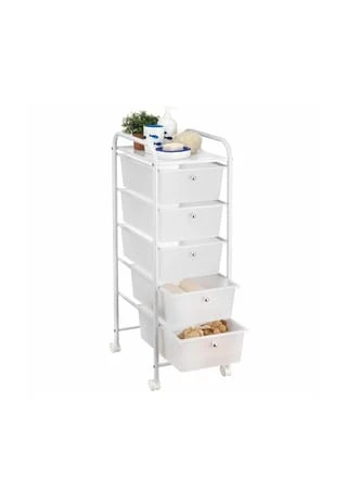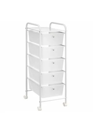 Der Rollcontainer GINA mit 5 Schubladen ist ideal für Ihr Zuhause, im Büro, beim Friseur oder in einer Arztpraxis. Verstauen Sie Ihre Arbeitsmaterialien oder Kosmetikartikel und haben alles immer griffbereit zu Hand. Dank der 4 Rollen ist der Container mobil und flexibel einsetzbar. Materialbeschreibung: Das Gestell ist aus weiß lackiertem Metall gefertigt. Die transparenten Schubladen sind aus Kunststoff gearbeitet. Ausstattung/ Merkmale des Produkts: 5 Schubladen – je 29 x 14 x 39 cm (B x H x T) obere Ablage aus Lochblech 4 mobile Rollen Versand & Montage: Lieferumfang: Rollcontainer inklusive Aufbauanleitung Artikel wird zerlegt geliefert Kundenfreundliche Montage mit Hilfe der beigelegten Aufbauanleitung Lieferung erfolgt ohne Dekoration Lieferung erfolgt per Paketdienst