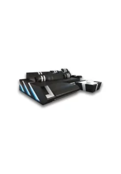 Das Ledersofa Apollonia macht Eindruck. Dafür sorgt die Kombination aus markantem modernem Design und eleganten Lederbezügen. Erhältlich in verschiedenen geschmackvollen Farben, ist diese Couch ein Blickfang für jedes Wohnzimmer. Zudem hat sie einige innere Qualitäten zu bieten. Dies beginnt bei multifunktionalen Kopfstützen und schließt einen USB-Anschluss in der Armlehne mit ein. Beleuchtung – Energieffizienzklasse: Geeignet für Leuchtmittel der Skala A++ bis E Beleuchtung Modellkennung : 50502 Breite: 315 cm Länge: 190 cm Höhe: 85 cm Sitzehöhe: 40 cm Sitztiefe: 60 cm Optional: Schlaffunktion (ausziehbares Bett), Getränkekühler mit USB – Handy Ladestation, elektrische Relax Funktion Farben: Bei einer Farbkombination wie zum Beispiel “rot-weiss” ist die erste Farbe (rot) immer die Hauptfarbe, welche den Großteil des Sofas ausmachen wie Sitzflächen und Rückenlehnen. Bei der Zweitfarbe (weiss) handelt es sich um eine Akzentfarbe, welche zum Beispiel die Zierstreifen oder Kopfstützen haben. Bezugsstoffbeschreibung: Luxus-Kustleder = ECHT-/KUNSTLEDER MIX Bei dieser Version werden alle unmittelbar beanspruchten Teile, wie die Sitzflächen und Rückenlehnen, mit echtem Italienischen Rindsleder bezogen. Um Ihnen gleichzeitig einen attraktiven Preisvorteil zu ermöglichen, werden bei dieser Bezugsvariante die nicht unmittelbar beanspruchten Teile, wie z.B. die Rückseite, Seitenteile oder bodennahe Zierstreifen und Armlehnen, durch ein farblich passendes ?Soft Life Premium” Kunstleder ergänzt. Kunstleder = KUNSTLEDER PREMIUM Bei Dieser Variante fertigen wir Ihr Sofa komplett in einem hochwertigen Kunstleder an. Unser Soft Life Premium Kunstleder hat eine feine Ledernarbung und einen weichen Textilrücken. Das Leder ist UV-beständig und wird auf Grund seiner hohen Qualität und Beständigkeit auch von vielen namhaften Möbelherstellern verwendet. Es ist besonders hautverträglich, schweißbeständig, wasserabweisend und reißfest. Long-Life-Leder Long = ECHTLEDER PREMIUM Bei dieser Ausführung wird das Sofa vollständig mit echtem italienischem Nappaleder bezogen. Es handelt es sich hierbei um ein hochwertiges Rindsleder aus Italien mit feiner Narbung und exzellenten Eigenschaften. Es ist besonders weich und nur mit einer leichten Pigmentierung versehen, um die Oberfläche gegen das Eindringen von Flüssigkeit und gegen Verschmutzungen besser zu schützen. Leder Bull = BÜFFELLEDER PREMIUM Bei unserem exklusiven Büffelleder handelt es sich um ein Premium Dickleder der höchsten Qualität. Mit einer Stärke von 1,4 1,6 mm und seiner typischen Narbenstruktur genügt es höchsten Ansprüchen. Die Qualität unseres Büffelleders ist deutlich zu sehen und vor allem zu spüren und es erfreut sich gerade bei Kennern sehr großer Beliebtheit.