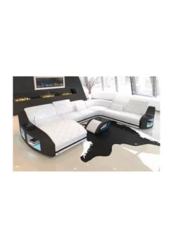 Die Leder Wohnlandschaft Swing XXL ist die größte Ausführung dieser Reihe. Auf der Designer Couch findet wirklich jeder seinen Platz. Natürlich überzeugt auch die XXL Version mit seinem wunderschönen Design. Das Chesterfield Muster harmoniert perfekt mit den Rundungen der Designer Couch und verleiht ihm eine elegante Austrahlung. Auch an den Funktionen wird bei der Leder Wohnlandschaft nicht gespart. Beleuchtung – Energieffizienzklasse: Geeignet für Leuchtmittel der Skala A++ bis E Beleuchtung Modellkennung : 50502 Breite: 399 cm Länge: 294 cm Höhe: 85 cm Sitzehöhe: 40 cm Sitztiefe: 60 cm Optional: Schlaffunktion (ausziehbares Bett), Getränkekühler mit USB – Handy Ladestation, elektrische Relax Funktion Farben: Bei einer Farbkombination wie zum Beispiel “rot-weiss” ist die erste Farbe (rot) immer die Hauptfarbe, welche den Großteil des Sofas ausmachen wie Sitzflächen und Rückenlehnen. Bei der Zweitfarbe (weiss) handelt es sich um eine Akzentfarbe, welche zum Beispiel die Zierstreifen oder Kopfstützen haben. Bezugsstoffbeschreibung: Luxus-Kustleder = ECHT-/KUNSTLEDER MIX Bei dieser Version werden alle unmittelbar beanspruchten Teile, wie die Sitzflächen und Rückenlehnen, mit echtem Italienischen Rindsleder bezogen. Um Ihnen gleichzeitig einen attraktiven Preisvorteil zu ermöglichen, werden bei dieser Bezugsvariante die nicht unmittelbar beanspruchten Teile, wie z.B. die Rückseite, Seitenteile oder bodennahe Zierstreifen und Armlehnen, durch ein farblich passendes ?Soft Life Premium” Kunstleder ergänzt. Kunstleder = KUNSTLEDER PREMIUM Bei Dieser Variante fertigen wir Ihr Sofa komplett in einem hochwertigen Kunstleder an. Unser Soft Life Premium Kunstleder hat eine feine Ledernarbung und einen weichen Textilrücken. Das Leder ist UV-beständig und wird auf Grund seiner hohen Qualität und Beständigkeit auch von vielen namhaften Möbelherstellern verwendet. Es ist besonders hautverträglich, schweißbeständig, wasserabweisend und reißfest. Long-Life-Leder Long = ECHTLEDER PREMIUM Bei dieser Ausführung wird das Sofa vollständig mit echtem italienischem Nappaleder bezogen. Es handelt es sich hierbei um ein hochwertiges Rindsleder aus Italien mit feiner Narbung und exzellenten Eigenschaften. Es ist besonders weich und nur mit einer leichten Pigmentierung versehen, um die Oberfläche gegen das Eindringen von Flüssigkeit und gegen Verschmutzungen besser zu schützen. Leder Bull = BÜFFELLEDER PREMIUM Bei unserem exklusiven Büffelleder handelt es sich um ein Premium Dickleder der höchsten Qualität. Mit einer Stärke von 1,4 1,6 mm und seiner typischen Narbenstruktur genügt es höchsten Ansprüchen. Die Qualität unseres Büffelleders ist deutlich zu sehen und vor allem zu spüren und es erfreut sich gerade bei Kennern sehr großer Beliebtheit.